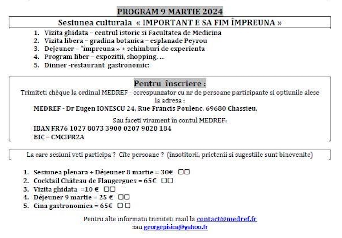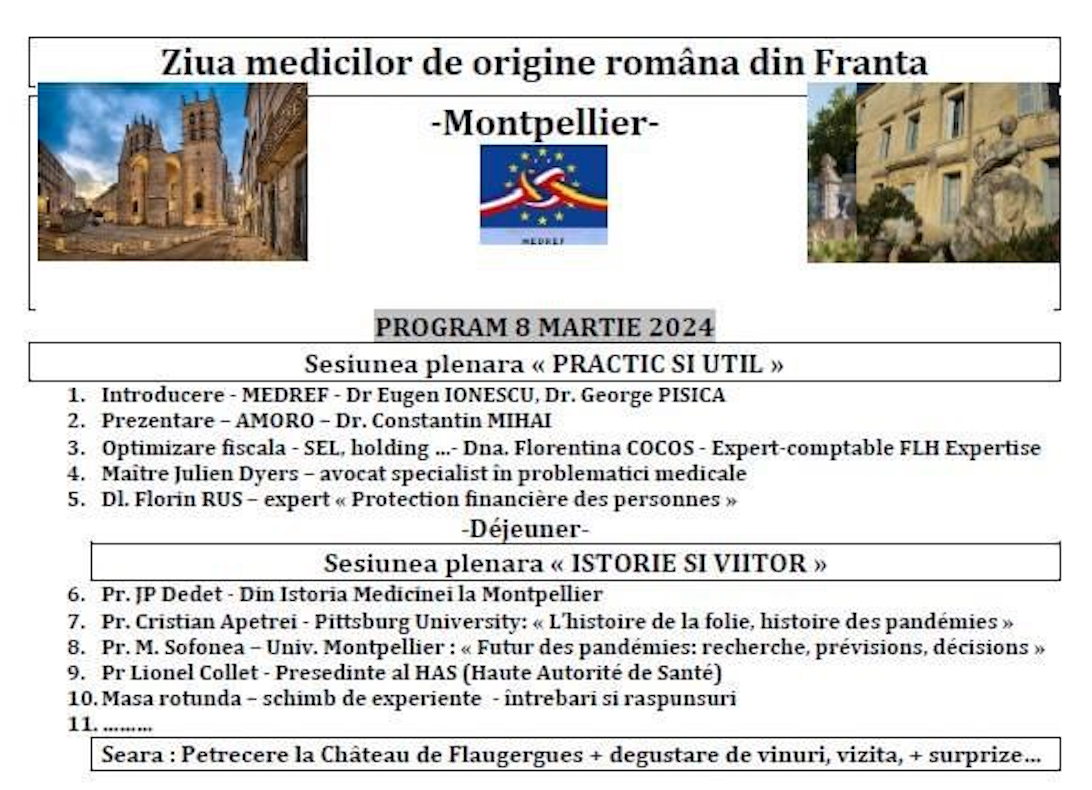 Pe 8 martie 2024 organizam la Montpellier întâlnirea anuala a medicilor de origine româna în Franta !